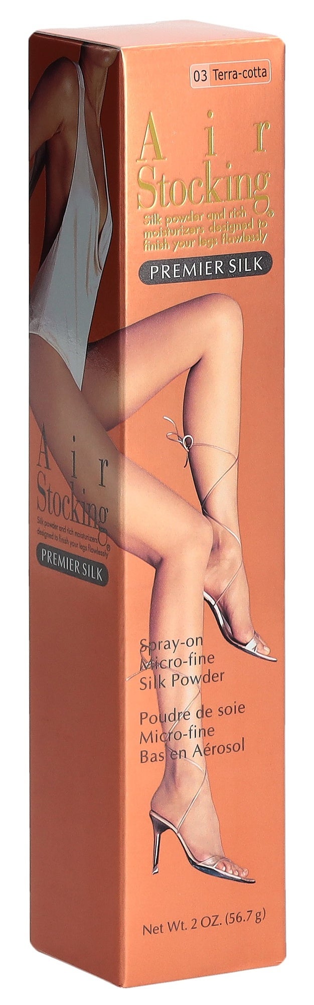 Les bas en aérosol. Avec une combinaison de protéines de soie et d’acides aminés, ainsi qu’un complexe spécial de caféine et de thé vert.