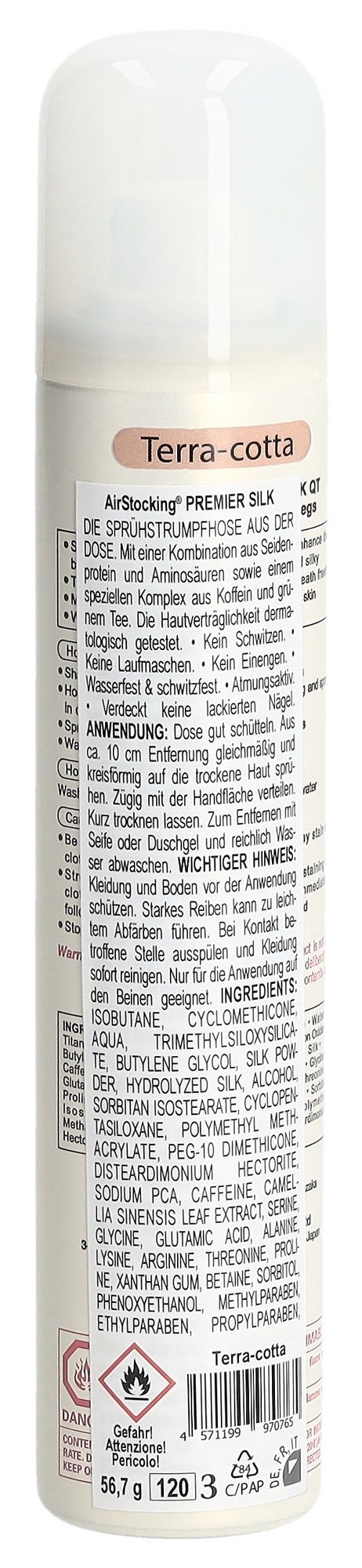 Propane, Butane, Petroleum Distillates, Cyclomethicone, Aqua, Titanium Dioxide, Trimethylsiloxysilicate, Iron Oxides, Butylene Glycol, Sorbitan Isostearate, Cyclopentasiloxane, Polymethyl Methacrylate, PEG-10 Dimethicone, Disteardimonium Hectorite, Sodium PCA, Silk Powder, Hydrolyzed Silk, Caffeine, Phenoxyethanol, Xanthan Gum, Camellia Sinensis, Serine, Glycine, Glutamic Acid, Alanine, Lysine, Arginine, Threonine, Proline, Betaine, Sorbitol.