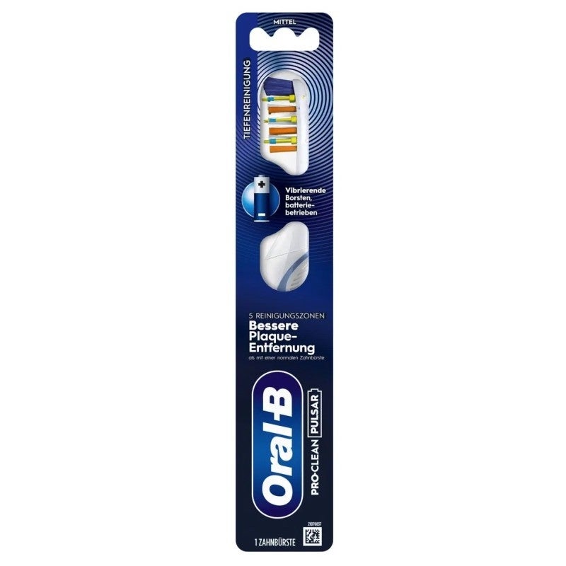 La Oral-B Pro-Clean Pulsar est une brosse à dents manuelle à piles conçue pour un nettoyage supérieur à celui des brosses à dents manuelles traditionnelles. Grâce à son design bien pensé avec élimination de la plaque en 5 zones, elle assure un résultat de brossage particulièrement minutieux et une sensation de bouche sensiblement plus propre. De plus, la brosse à dents offre une expérience de brossage personnalisée grâce aux différentes variantes de Farb et tailles demballages. La fonction de vibration intégrée soutient le mouvement de brossage sans perdre le confort dune brosse à dents manuelle classique.