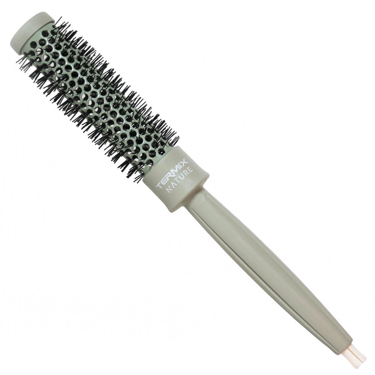 Les brosses de la ligne Termix Professional Nature sont fabriquées à partir d'un matériau naturel innovant qui présente des propriétés catalytiques permettant l'absorption des gaz nocifs en composés utiles, contribuant ainsi à purifier l'air en réduisant la concentration de ces polluants dans l'environnement. Ce processus de transformation est constant, de jour comme de nuit, et élimine tout type de pollution nocive pour la peau et pour l'homme, sans qu'il soit nécessaire de l'activer par des sources externes. La brosse se caractérise également par le fait qu'elle dispose de poils ionisés qui sont très résistants à la chaleur et peuvent retrouver leur stabilité initiale. La disposition verticale des poils permet en outre une meilleure pénétration dans les cheveux et offre ainsi une meilleure tenue. Le revêtement céramique du cylindre en aluminium assure une répartition uniforme de la chaleur sur toute la longueur, ce qui permet de sécher les cheveux plus rapidement et de mieux les traiter. Le manche est en polypropylène, un matériau très résistant et antiadhésif qui empêche les cheveux d'adhérer au manche. Il a été conçu dans une gamme de couleurs gris-vert pour être discret et intemporel. Sur la partie inférieure se trouve un pic utilisé pour séparer les mèches de cheveux, ce qui permet de gagner du temps et augmente le confort.