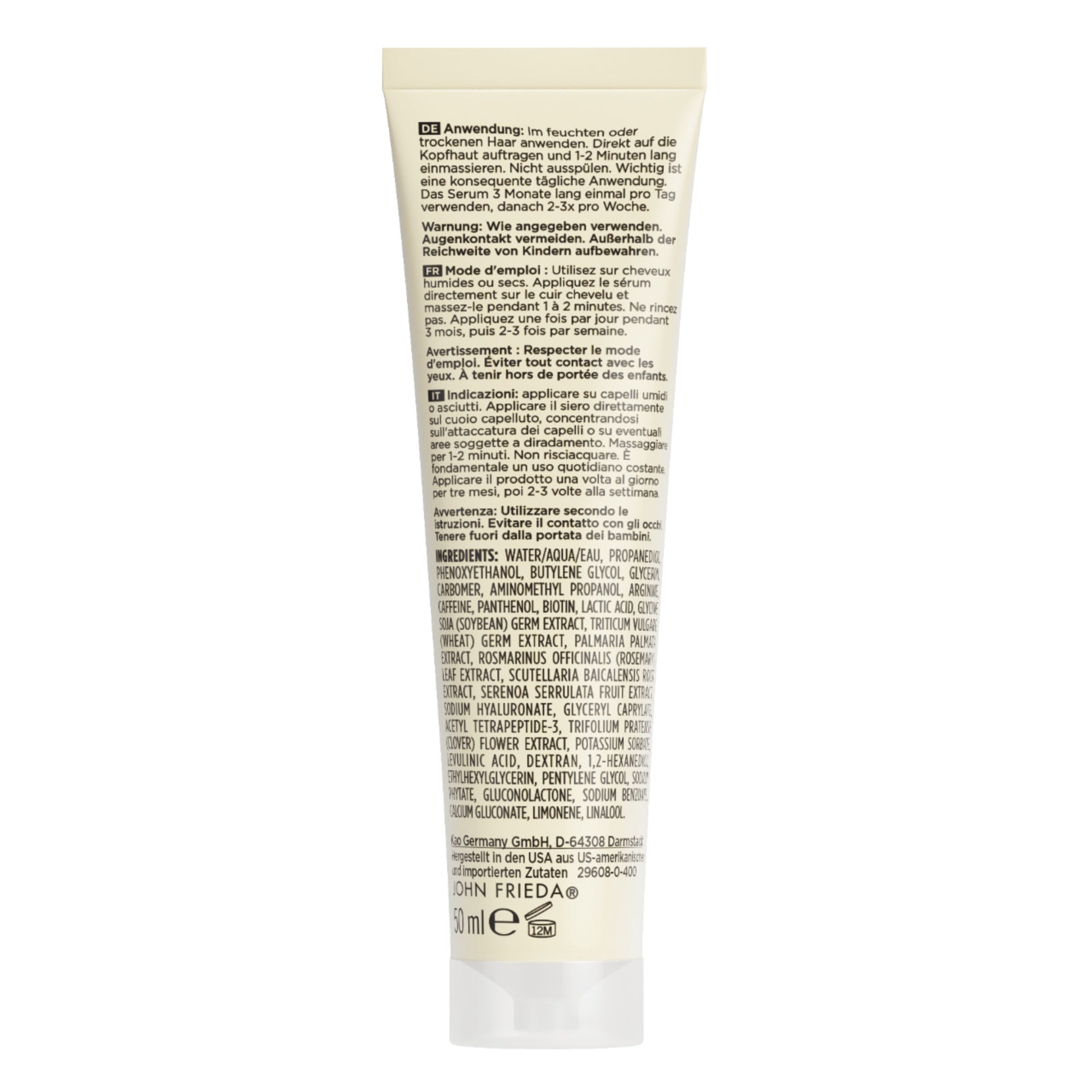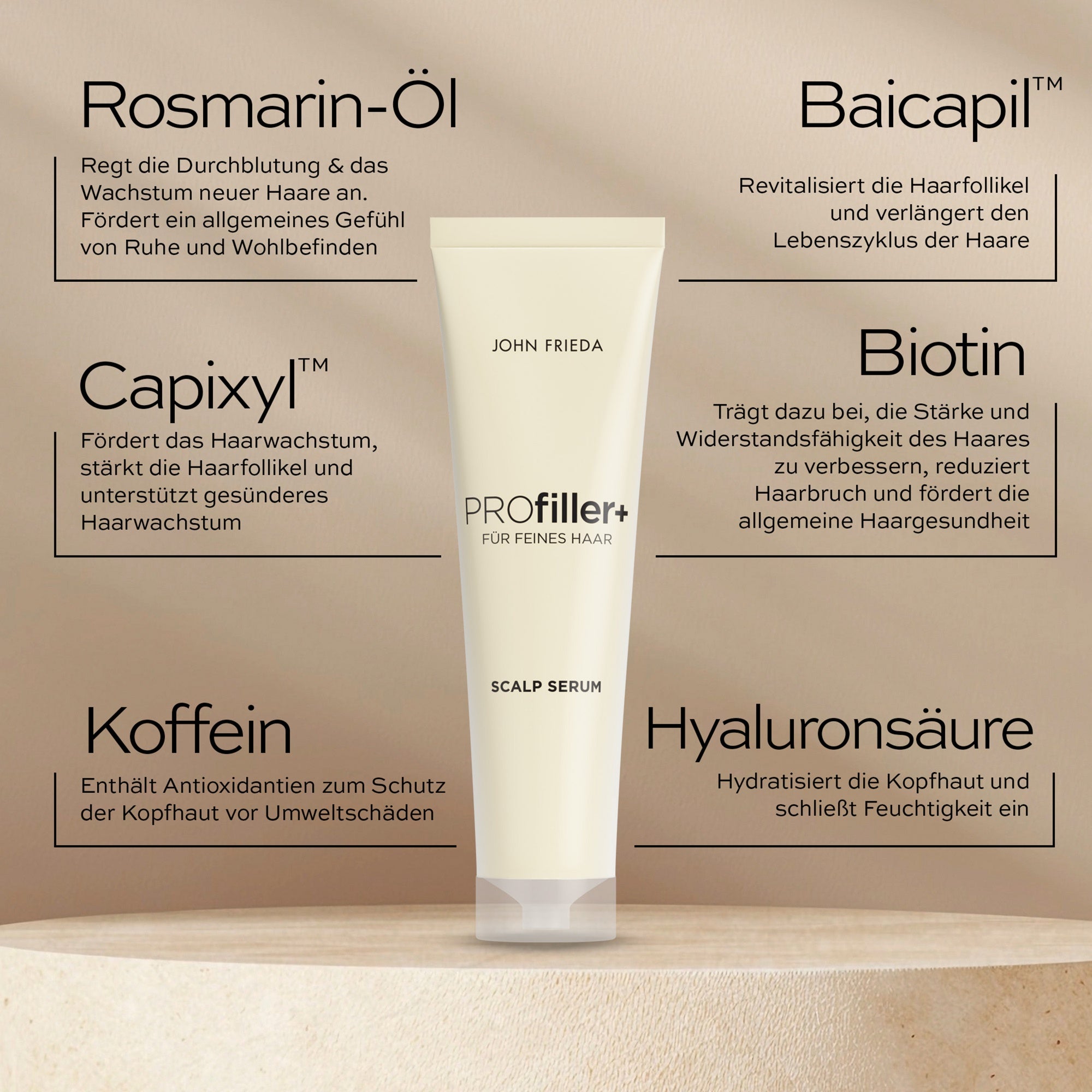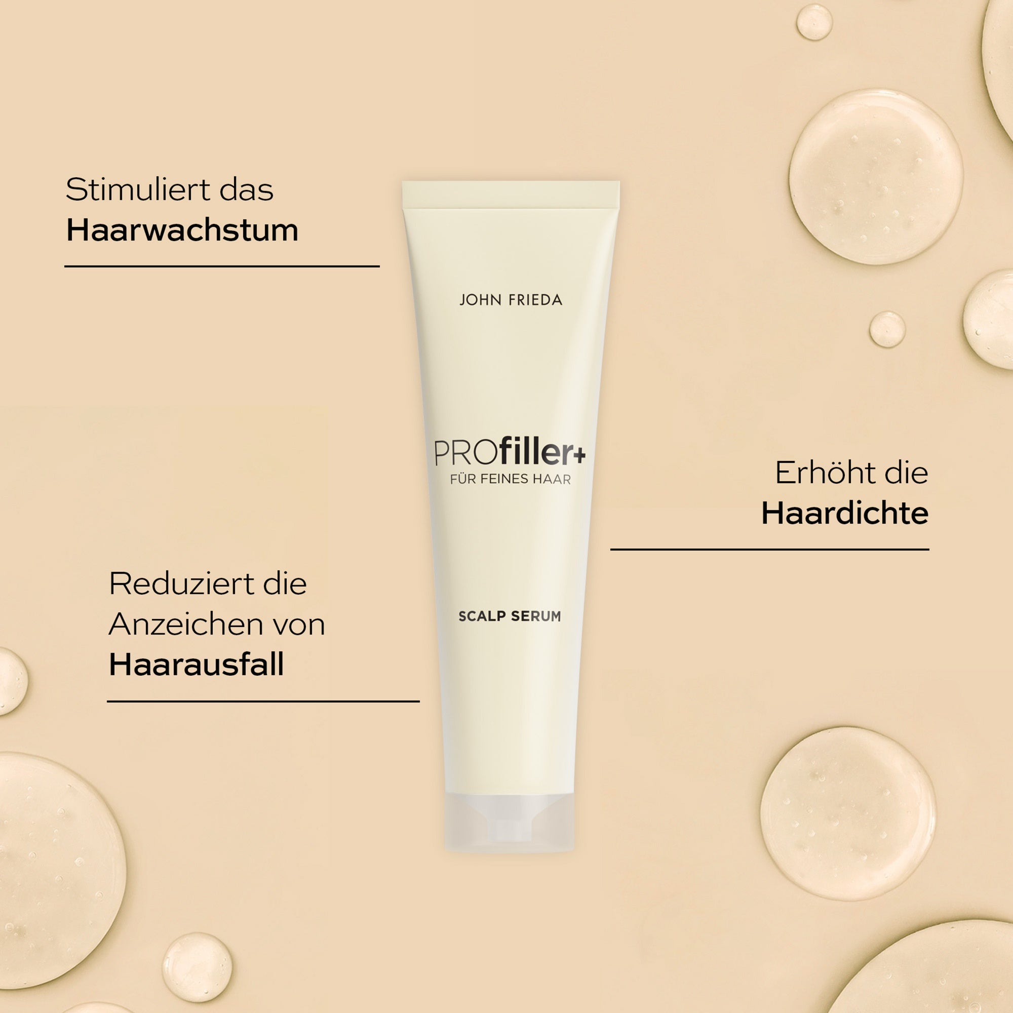 Pour des résultats optimaux, associez le sérum à la gamme complète PROfiller+ de John Frieda – comprenant le shampooing, l’après-shampooing et le spray fortifiant pour des cheveux nourris et volumineux.