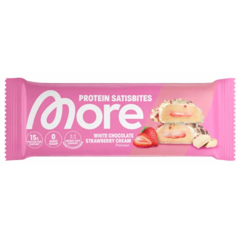 Les Satisbites More Protein combinent une pâte protéinée crémeuse, du chocolat croquant et un fourrage fondant - sans sucre ajouté rz(contient naturellement du sucre). Chaque portion contient 2 bouchées pratiques avec 13 g de protéines par portion (50 g). Les protéines contribuent à laugmentation de la masse musculaire et au maintien de la masse musculaire1.