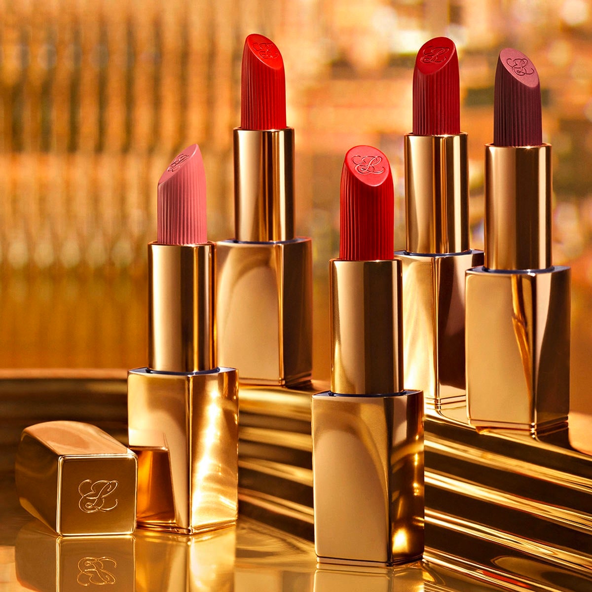 Faites le moment. Un rouge à lèvres adapté à chaque apparition impressionnante. Ce rouge à lèvres longue tenue confère aux lèvres une couleur expressive et agréable à porter, qui flatte toutes les carnations. Le rouge à lèvres intense est de couleur inaltérable et tient 10 heures sans couler, ni déteindre ou se déposer dans les ridules. Fini crème : la couleur aux multiples facettes s'applique facilement et donne un fini uniforme et soyeux. Rouge à lèvres entièrement couvrant aux propriétés repulpantes, fortifiantes et nourrissantes. (Si vous souhaitez plus de nuances, consultez également nos finis Matte et Hi-Lusture). Le Moisture Lock Complex*, d'origine naturelle, apporte un soin supplémentaire aux lèvres pendant qu'il est porté. Les lèvres paraissent immédiatement plus pleines et plus souples et, au fil du temps, leur aspect est plus défini et plus uniforme, même après avoir retiré le rouge à lèvres. La pointe du rouge à lèvres, conçue par des experts, a une forme parfaite pour dessiner le contour de vos lèvres avec une précision sans effort. L'étui doré est un véritable bijou qui tient agréablement dans la main. Spécialement conçu pour être rechargé dans une sélection choisie de nos couleurs de rouge à lèvres les plus populaires. Application : Pour un léger accent de couleur, appliquer une fois. Pour augmenter la couvrance et intensifier l'effet de ce rouge à lèvres longue tenue, appliquer plusieurs fois.