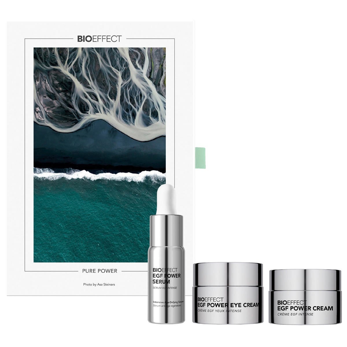 EGF Power Serum: GLYCERIN, WATER (AQUA), SODIUM CITRATE, ACETYL GLUCOSAMINE (NAG), ISOPENTYLDIOL, PHENOXYETHANOL, SODIUM CHLORIDE, SODIUM HYALURONATE, CITRIC ACID, BARLEY (HORDEUM VULGARE) SEED EXTRACT, EGF (BARLEY SH-OLIGOPEPTIDE-1), KGF (BARLEY SH-POLYPEPTIDE-3). EGF Power Eye Cream: WATER (AQUA), BUTYROSPERMUM PARKII (SHEA) BUTTER, CETYL ALCOHOL, GLYCERIN, SORBITOL, CAFFEINE, OENOTHERA BIENNIS (EVENING PRIMROSE) OIL, GLYCERYL STEARATE SE, PROPYLENE GLYCOL, CETEARYL OLIVATE, SORBITAN OLIVATE, NIACINAMIDE, SQUALANE, PHENOXYETHANOL, SODIUM CITRATE, BAKUCHIOL, CITRUS LIMON (LEMON) PEEL POWDER, SCLEROTIUM GUM, CITRUS AURANTIFOLIA (LIME) PEEL POWDER, SORBITAN OLEATE, TOCOPHEROL, ETHYLHEXYLGLYCERIN, SODIUM HYALURONATE, XANTHAN GUM, CERAMIDE NG, CITRIC ACID, BARLEY (HORDEUM VULGARE) SEED EXTRACT, EGF (BARLEY SH-OLIGOPEPTIDE-1). EGF Power Cream: WATER (AQUA), BUTYROSPERMUM PARKII (SHEA) BUTTER, C12-20 ACID PEG-8 ESTER, BUTYLENE GLYCOL, ONEOTHERA BIENNIS (EVENING PRIMROSE) OIL, CETYL ALCOHOL, SQUALANE, SORBITOL, HYDROGENATED POLYISOBUTENE, NIACINAMIDE, TOCOPHEROL, SODIUM HYALURONATE, BETA GLUCAN, ORIDONIN, PHENOXYETHANOL, SORBITAN OLEATE, CARBOMER, XANTHAN GUM, ETHYLHEXYLGLYCERIN, POLYSORBATE 20, POTASSIUM HYDROXIDE, BARLEY (HORDEUM VULGARE) SEED EXTRACT, EGF (BARLEY SH-OLIGOPEPTIDE-1)