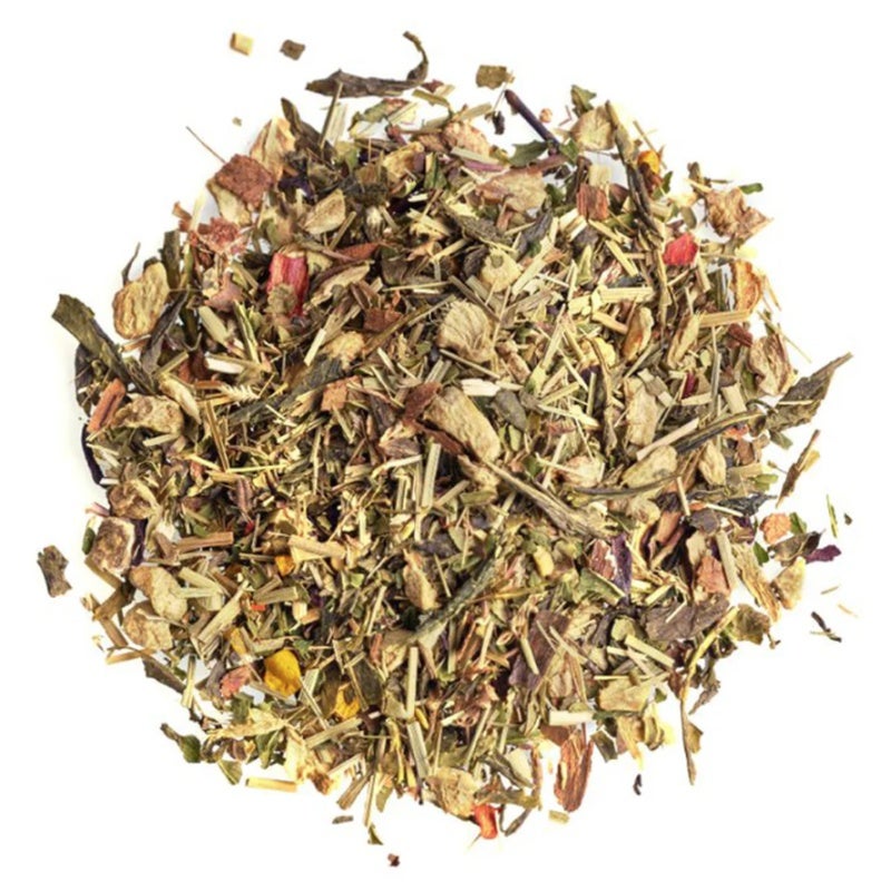Ingwer* (30 %), Grüner Tee* (22 %), Zitronengras* (14 %), Pfefferminze* (10 %), Mate* (5 %), Löwenzahnwurzel* (5 %), Kurkuma* (4 %), Zimt* (3 %), ätherisches Zitronenöl* (2 %), Hibiskus* (2 %), Klettenwurzel* (1 %), Chili* (1 %), Ginsengwurzel* (1 %).