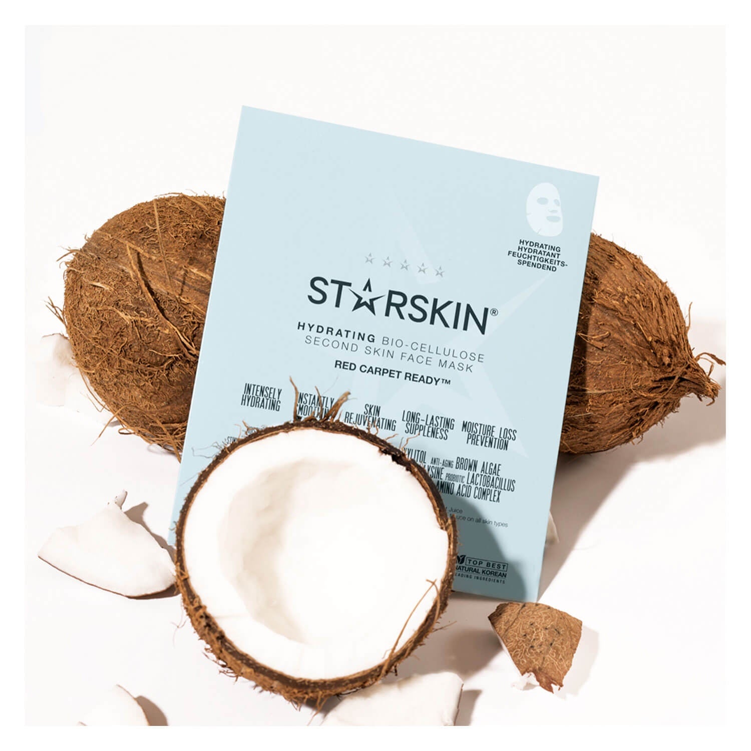 STARSKIN Red Carpet Ready™ est un masque facial hydratant à la bio-cellulose qui hydrate intensément pour une peau visiblement plus lisse et rajeunie. La Bio-Cellulose premium de STARSKIN est formulée avec du jus de noix de coco naturellement fermenté et riche en vitamines, et hydrate et revitalise la peau sans irritation. La feuille translucide est conçue pour épouser les contours du visage pour fournir à la peau un puissant complexe d'acides aminés revitalisants et d'algues brunes. Chaque masque est imbibé d'un flacon plein de sérum repulpant pour la peau - La peau est instantanément radieuse, hydratée en profondeur et lissée pour un teint jeune et lumineux. Base non aqueuse.