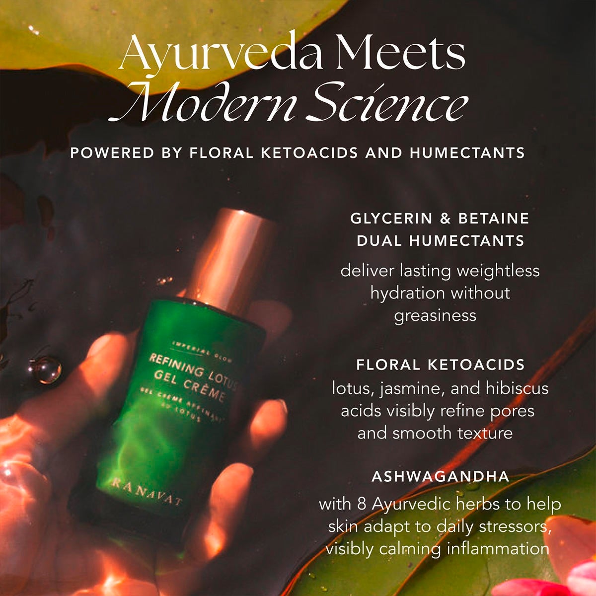 Aqua (Water, Eau), Betaine, Cetearyl Olivate, Isoamyl Laurate, Sorbitan Olivate, Squalene, Gluconolactone, Glycerin, Astrocaryum Murumuru Seed Butter, Sesamum Indicum (Sesame) Seed Oil, Withania Somnifera (Ashwagandha) Root Extract, Nelumbo Nucifera (Lotus) Flower Extract, Pavonia Odorata Root Extract, Glycyrrhiza Glabra (Licorice) Root Extract, Hemidesmus Indicus (Sarsaparilla) Root Extract, Mesua Ferrea (Nagkesar) Flower Extract, Boerhavia Diffusa (Punarnava) Root Extract, Rubia Cordifolia (Madder) Stem Extract, Solanum Xanthocarpum (Kantakari) Fruit Extract, Solanum Indicum Fruit Extract, Cyperus Rotundus (Nutgrass) Root Extract, Prunus Cerasus (Bitter Cherry) Stalk Extract, Hibiscus Sabdariffa Flower Extract, Bellis Perennis (Daisy) Flower Extract, Jasminun Officinale (Jasmine) Flower Extract, Spiraea Ulmaria (Meadowsweet) Flower Extract, Jasminum Officinale (Jasmine) Flower Oil, Sodium Hyaluronate, Xanthan Gum, Isoamyl Cocoate, Butylene Glycol, 1,2 Hexanediol, Benzyl Alcohol, Dehydroacetic Acid, Benzyl Benzoate, Linalool, Farnesol, Eugenol, Benzyl Alcohol