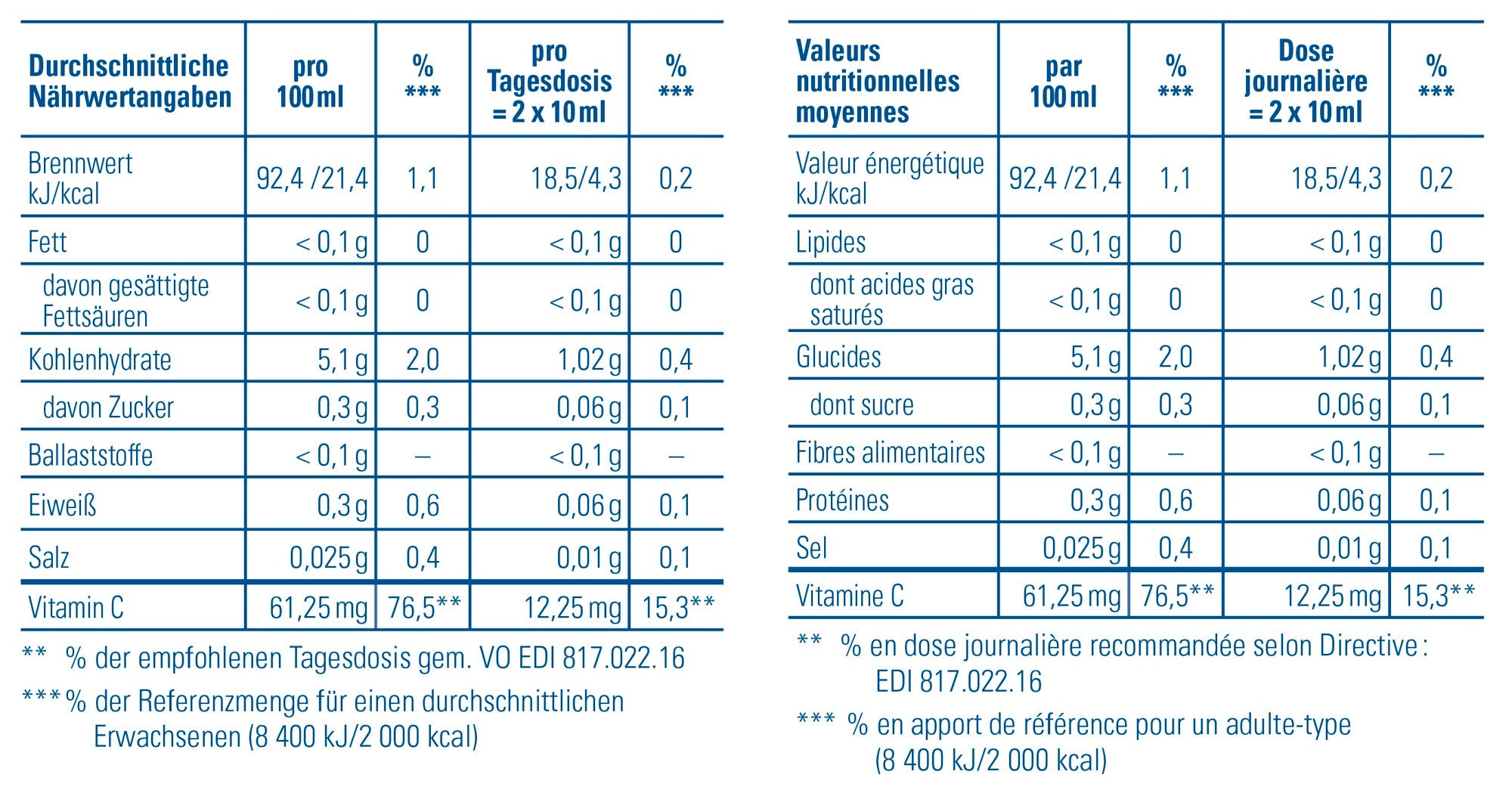 Adolescents/adultes à partir de 15 ans: 2x 10ml pur ou mélangé avec de l'eau, jus de fruits