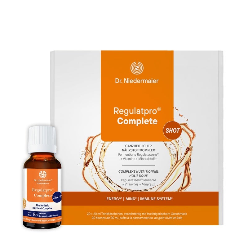 Regulatpro® Complete Shot est un complément alimentaire qui fournit chaque jour une large gamme de nutriments essentiels : 13 vitamines et 10 minéraux soutiennent votre bien-être et votre joie de vivre. Une solution idéale et naturelle pour tous les âges, des plus jeunes aux plus âgés !