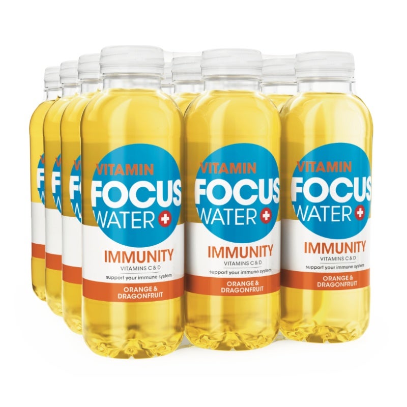 Wasser, Fruktosesirup, 4% Fruchtsaft aus Konzentrat (Orange 3%, Apfel, Drachenfrucht 1%), Orangenextrakt, natürliches Aroma, Säuerungsmittel: Citronensäure, Vitamine: C, Niacin (B3), Pantothensäure (B5), B6, Biotin (B7), D. Stabilisator: Johannisbrotkernmehl, Zinklactat, Farbstoff: Carotin. Ginseng-Extrakt.
