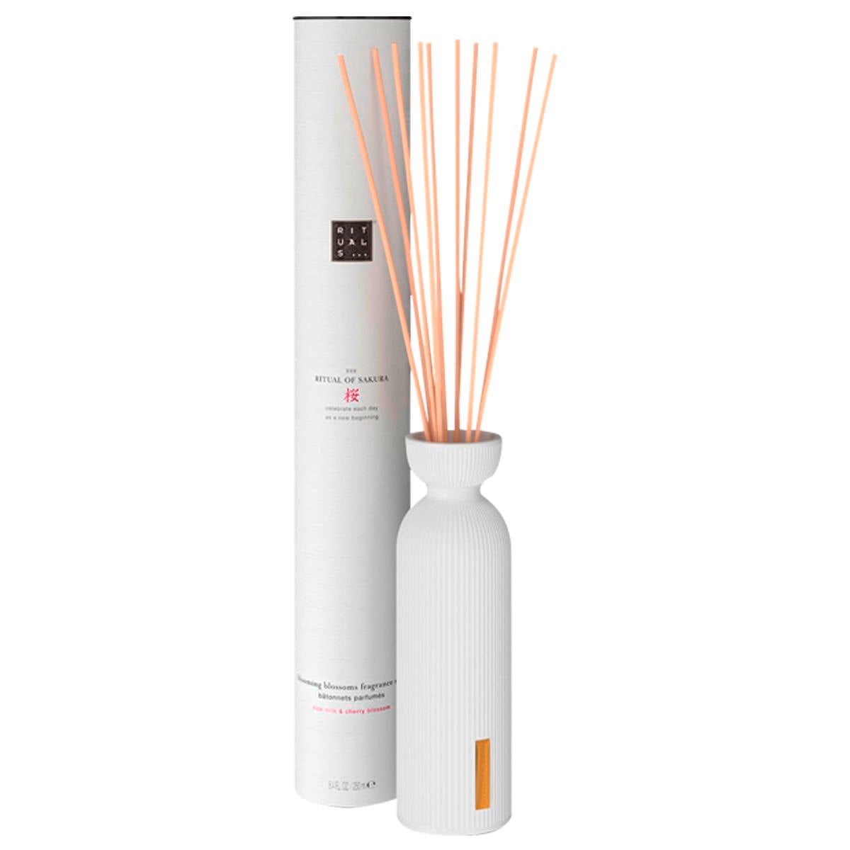 Les bâtons de parfum sont à base de lait de riz et de fleurs de cerisier. Une manière naturelle et élégante d'envelopper votre maison d'un parfum bienfaisant. Durée de vie d'environ trois mois. Associe les senteurs délicates du lait de riz et de la fleur de cerisier pour un arôme agréablement doux et crémeux. Parfait pour toute la maison : du salon à la salle de bains en passant par la cuisine et les toilettes. Conseil : pour une expérience olfactive encore plus intense, combinez les bâtons de parfum avec la bougie parfumée The Ritual of Sakura. Durée de vie d'environ trois mois. Application : Disposez les bâtonnets joints dans le flacon de parfum et lavez-vous ensuite les mains. Les bâtonnets parfumés créent une expérience olfactive bienfaisante sans qu'il soit nécessaire de les retourner. Si vous préférez une expérience olfactive plus intense, retournez les bâtonnets régulièrement. Profitez de cette expérience olfactive particulière et bienfaisante pendant trois mois maximum et, une fois le produit original utilisé, prolongez l'expérience olfactive en utilisant la recharge ou en la combinant avec une bougie parfumée.