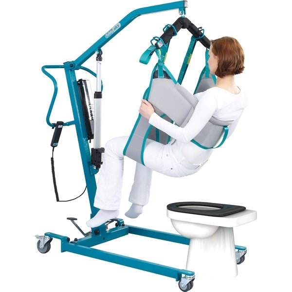 Cette sangle est parfaitement conçue pour le transfert rapide et simple des patients. Elle dispose d'un renfort rembourré intégré pour le dos et d'une sangle de poitrine qui donne au patient un sentiment de sécurité. Dans cette configuration, cette sangle peut aussi servir de sangle hygiénique. Le patient doit avoir suffisamment de stabilité propre.