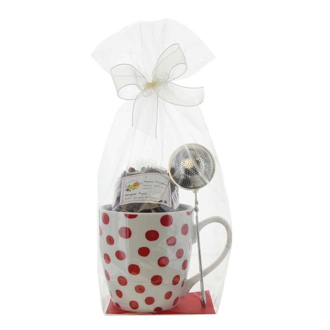 Papayawürfel, Hibiscusblüten, Korinthen, rote und schwarze Johannisbeeren, Heidelbeeren, Holunderbeeren, Himbeer- und Erdbeedstücke, Aroma