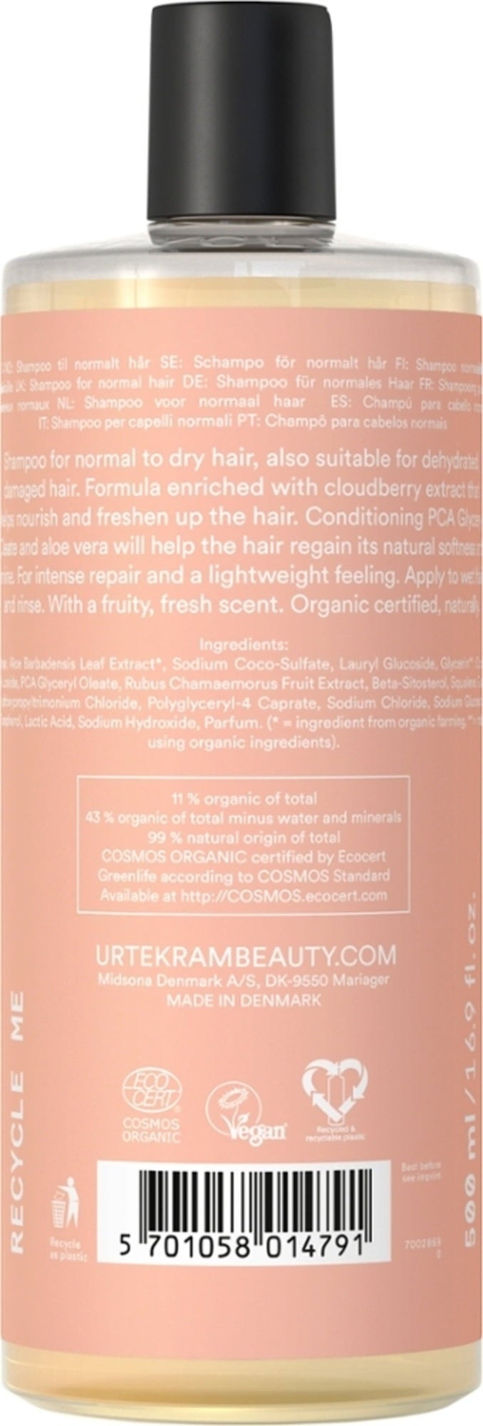 Le shampooing riche Nordic Berry répare et nourrit spécialement les cheveux abîmés et déshydratés, de la racine jusqu'aux pointes. L'extrait de mûre des marais nordique, riche en vitamines, revitalise et renforce la structure capillaire. Le glycéryléolate de PCA revitalisant et l'aloe vera bio hydratant aident les cheveux à retrouver leur souplesse et leur brillance naturelles. Pour des cheveux vigoureux et résistants, enveloppés d'un parfum fruité et frais de baies nordiques.
