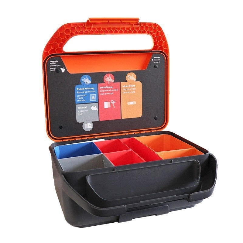 Le WERO Smart Case® petite, vide, est une solution étudiée et élégante pour une organisation des premiers secours structurée et fiable. Son boîtier robuste en plastique ABS assure protection et stabilité, tandis que l’aménagement intérieur modulaire permet un équipement personnalisé. Des structures claires, un système de guidage par couleurs avec pictogrammes et des plaques transparentes facilitent une orientation rapide en cas d’urgence.