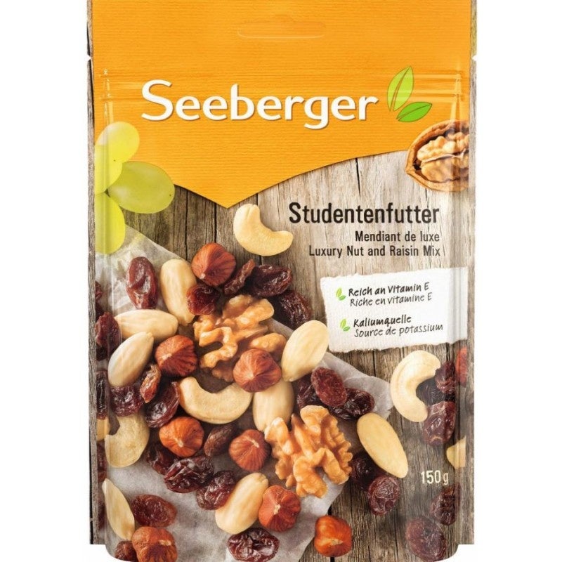 Nusskernmischung (in veränderlichen Gewichtsanteilen: Haselnusskerne, Mandeln blanchiert, Cashewkerne), Weinbeeren getrocknet, Walnusskerne