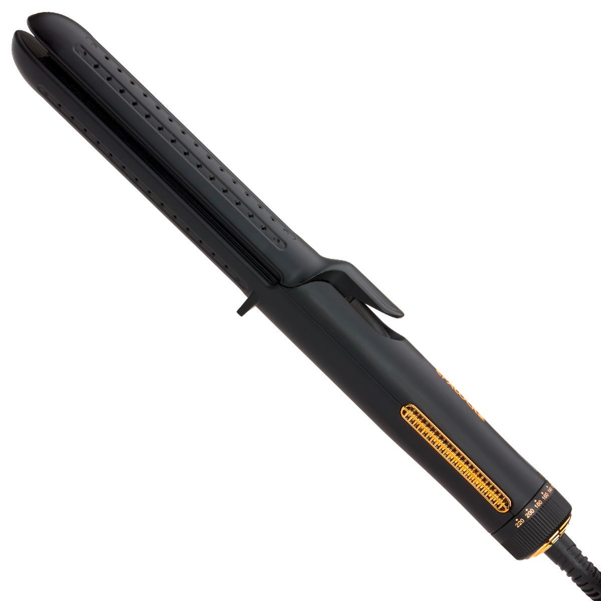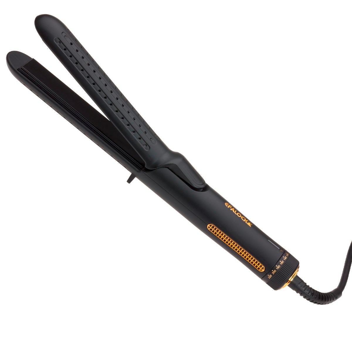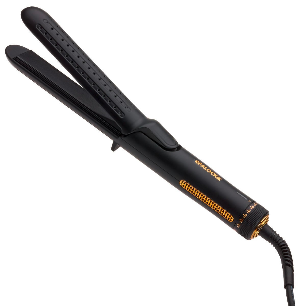 Fer à coiffer innovant avec AIRFLOW pour des boucles, des ondulations ou des cheveux lissés de très longue durée. Lors de l'utilisation, les cheveux sont mis en forme par la chaleur et fixés simultanément par un flux d'air froid. Résultat : un résultat de coiffure optimal qui tient très longtemps. La température adaptée à chaque type de cheveux peut être réglée sur 5 niveaux différents. Le bouton rotatif permet d'activer la fonction AIRFLOW lors de la mise en marche. Les plaques de coiffage à ressort, qui glissent facilement et sont recouvertes de céramique, assurent une glisse sans effort et une finition brillante du plus bel effet.