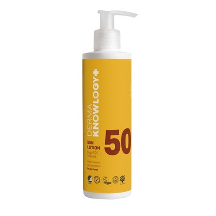 DermaKnowlogy Sun Lotion SPF50 est une crème solaire hypoallergénique, hydrofuge et respectueuse du corail, qui protège efficacement contre les rayons UVA et UVB nocifs du soleil. Cette protection solaire parfumée et hydratante se distingue particulièrement par ses propriétés uniques dabsorption et détalement, qui permettent une application facile et agréable, même sur les peaux les plus sensibles - avec un minimum de gras. Elle est également enrichie de glycérine et dhuiles nourrissantes qui hydratent la peau en profondeur et la laissent douce et souple.