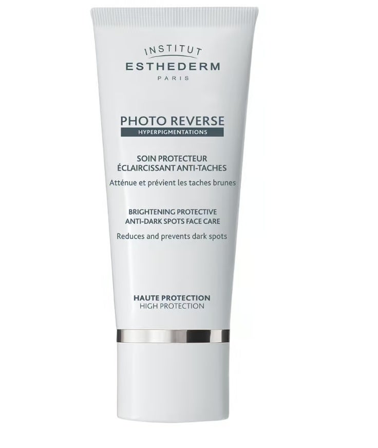 Pour ceux qui souhaitent obtenir un teint clair sans s'exposer au soleil, ou pour ceux qui ont déjà des taches pigmentaires, la peau doit être protégée avec un soin protecteur éclaircissant qui prévient et réduit l'hyperpigmentation. Photo Reverse Brightening Protective Anti-Dark Spots Face Care offre une très haute protection et est particulièrement adapté aux zones du visage, des mains et du décolleté les plus exposées au soleil. Il éclaircit la peau et réduit l'apparition de taches sombres, même au soleil. Non comédogène.