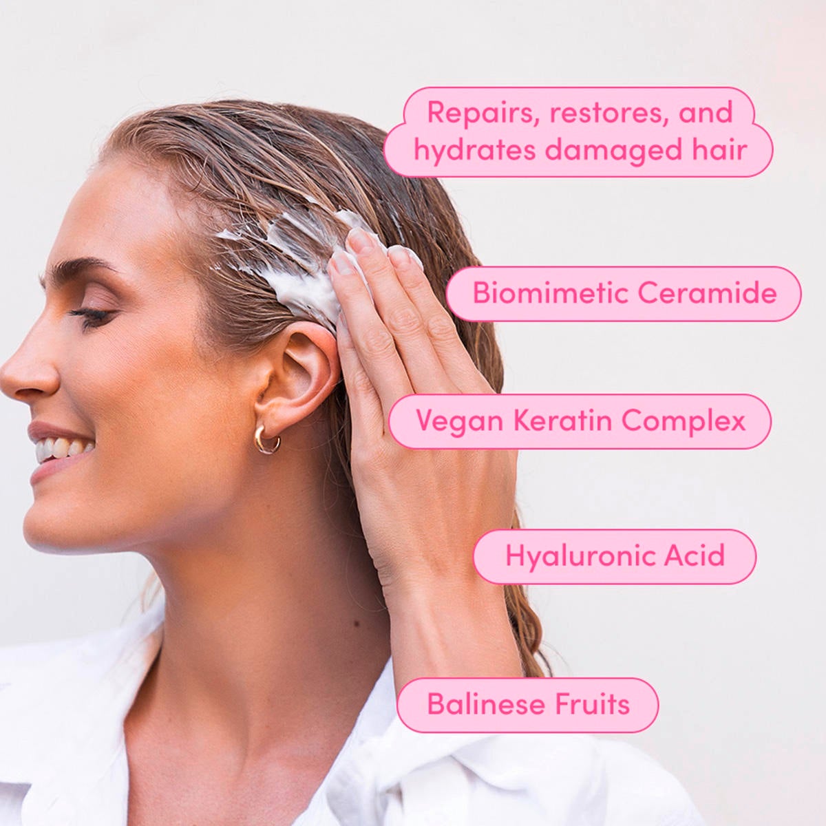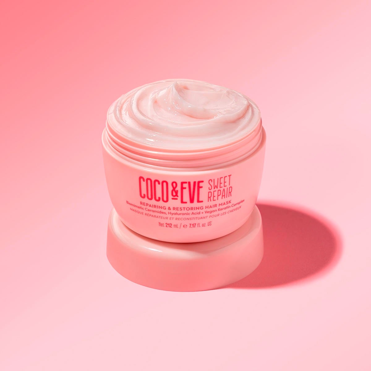 Tu obtiendras des résultats rapides à la maison grâce à sa formule unique qui contient une puissante combinaison d'ingrédients actifs et un mélange de fruits tropicaux riches en vitamines qui rendent les cheveux 85% plus forts et plus résistants. Le masque Sweet Repair de Coco & Eve est une nouvelle façon de réparer les cheveux affaiblis par la chaleur, les dommages chimiques et la couleur. Un mélange puissant de céramides biomimétiques, d'acide hyaluronique et de kératine végétalienne, ainsi que de nos fruits tropicaux riches en vitamines, réduit les dommages aux cheveux, apporte de la brillance et hydrate. Le masque aide les cheveux abîmés par la chaleur, qui souffrent de fourches, de pellicules et de cheveux cassants. Le masque a été scientifiquement conçu pour réparer et régénérer les cheveux en profondeur en seulement 5 minutes et complète ton Bond Building avec un rajeunissement capillaire complet. Résultats cliniquement prouvés :
