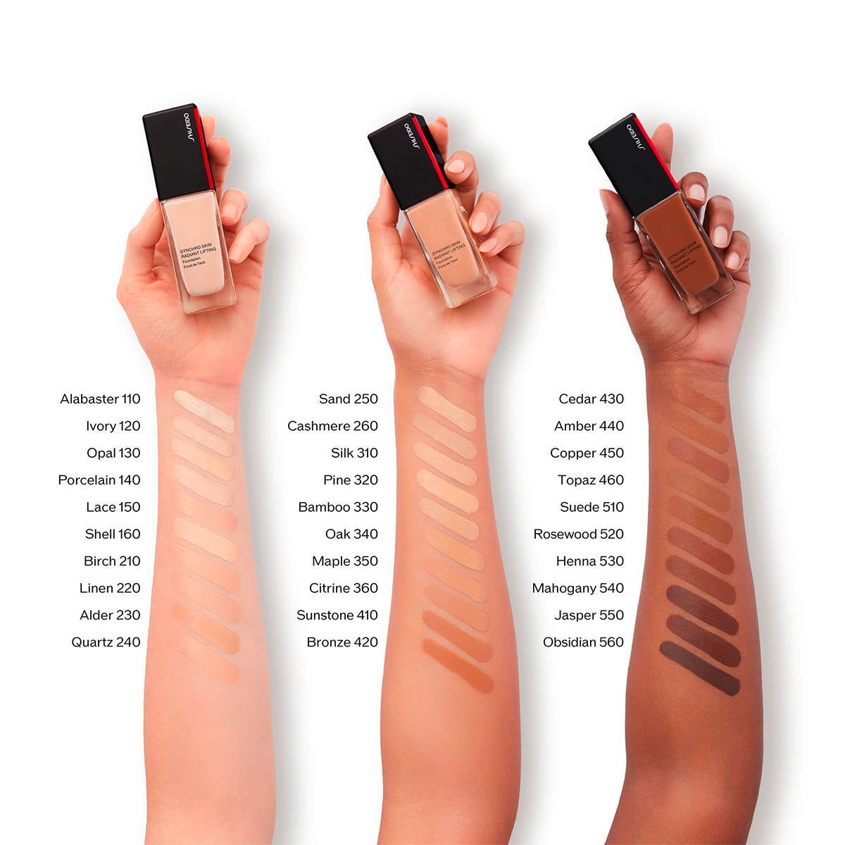 *Test clinique effectué sur 31 femmes. **Test instrumental sur 26 personnes. ***Test consommateur sur 100 femmes. Utilisation : bien agiter avant l'utilisation. Tenir le flacon légèrement incliné et appuyer à plusieurs reprises sur le distributeur à pompe pour extraire le produit. Un teint impeccable en trois étapes simples : 1. commencez par appliquer SYNCHRO SKIN Soft Blurring Primer pour obtenir une peau lisse. 2. applique le fond de teint SYNCHRO SKIN Radiant Lifting Foundation pour un fini impeccable et lumineux. 3. utiliser SYNCHRO SKIN Self-Refreshing Concealer pour parfaire ton teint.