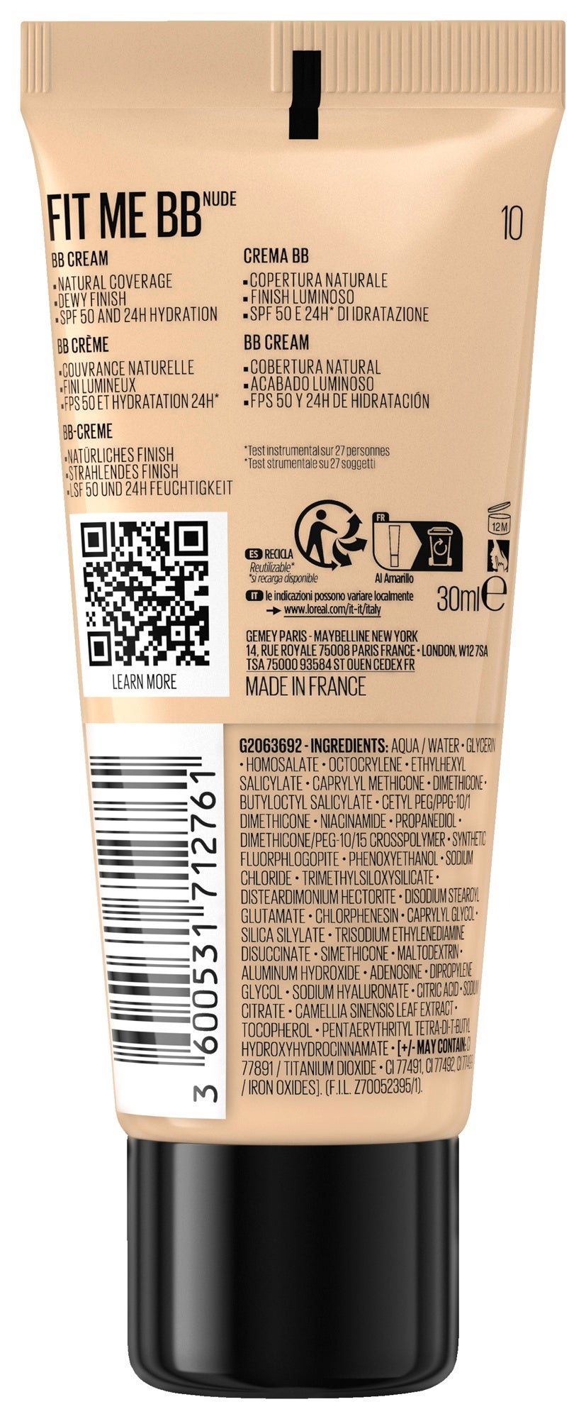 La BB Crème Fit me Nude 20 de Maybelline New York assure une amélioration immédiate et à long terme du teint. La BB Crème perfectrice de peau donne un teint frais et éclatant et hydrate la peau pendant 24 heures grâce à la formule à 90 % d'ingrédients nourrissants. En même temps, il offre un haut niveau de protection contre les effets des rayons UV grâce au facteur de protection solaire intégré de 50. De plus, il est agréablement léger sur la peau et assure une tenue impeccable tout au long de la journée. La teinte de la BB Cream s'adapte également au teint de la peau pour créer une couvrance légère et naturelle.