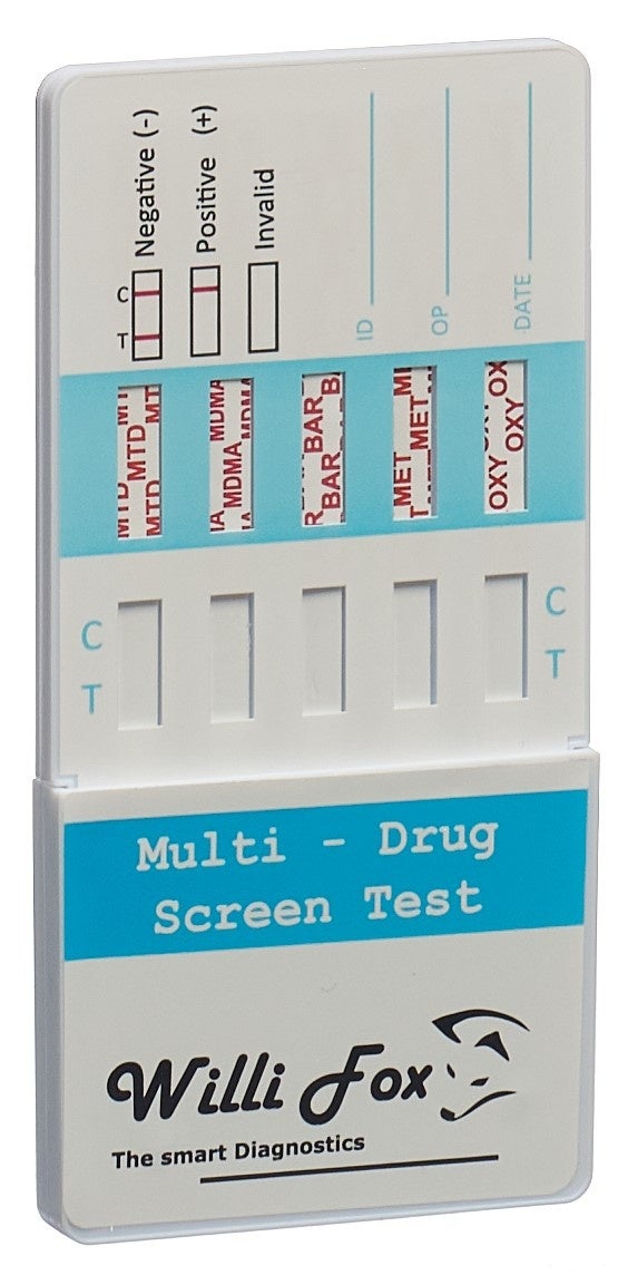Les tests de dépistage Willi Fox sont des tests immunologiques rapides en une étape pour la détection rapide et qualitative de médicaments dans lurine humaine. Ils sont disponibles pour les médicaments ou métabolites mentionnés ci-dessus. Les tests ont été développés pour une utilisation dans des laboratoires professionnels et des cabinets médicaux avec un personnel qualifié et doivent être effectués conformément aux instructions de test. Les tests de dépistage Willi Fox sont des dosages immunologiques à flux latéral basés sur le principe des liaisons compétitives. Leur application rapide et facile ainsi que leur sensibilité et leur spécificité élevées font des tests immunologiques des outils importants dans le diagnostic des médicaments