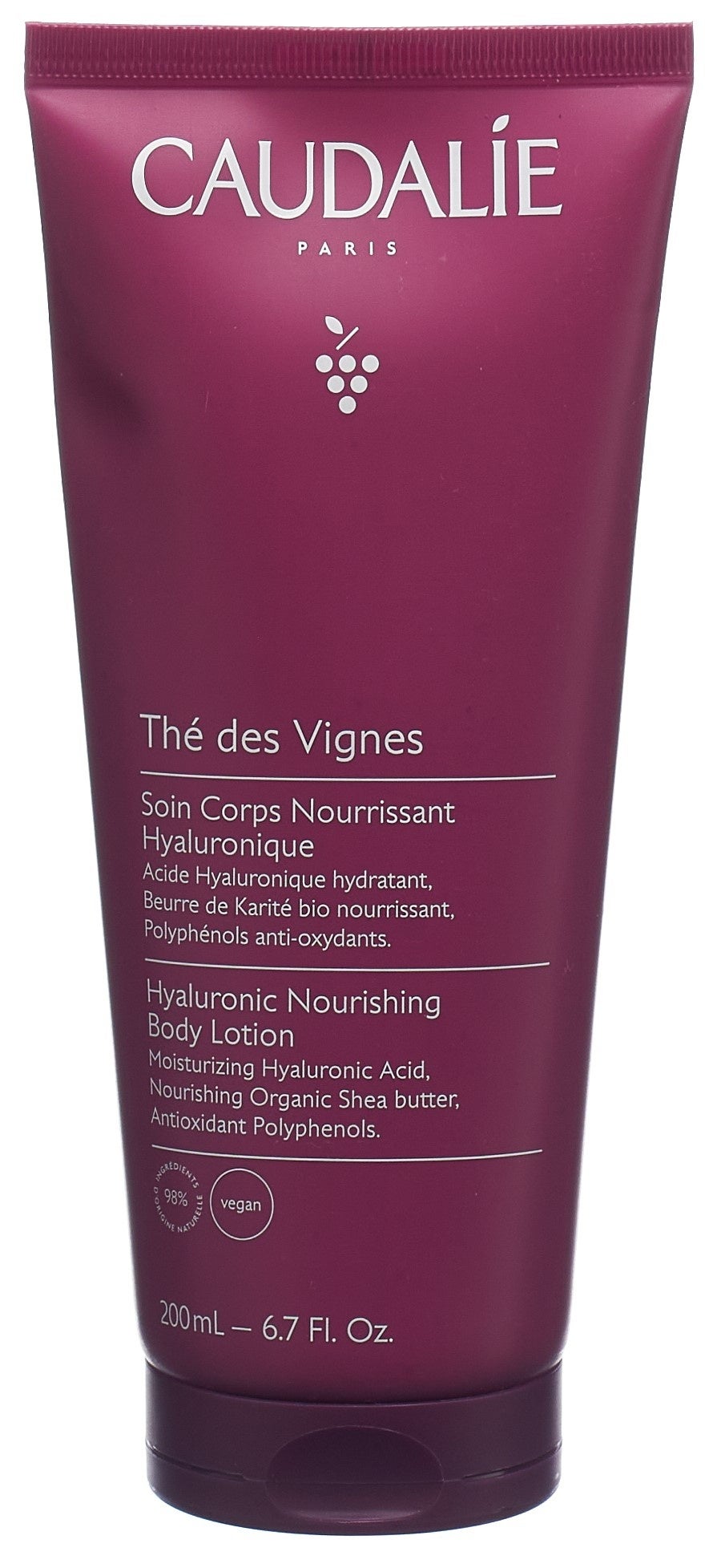 Soin corporel nourrissant à l'acide hyaluronique, au beurre de karité bio et au polyphénol antioxydant.