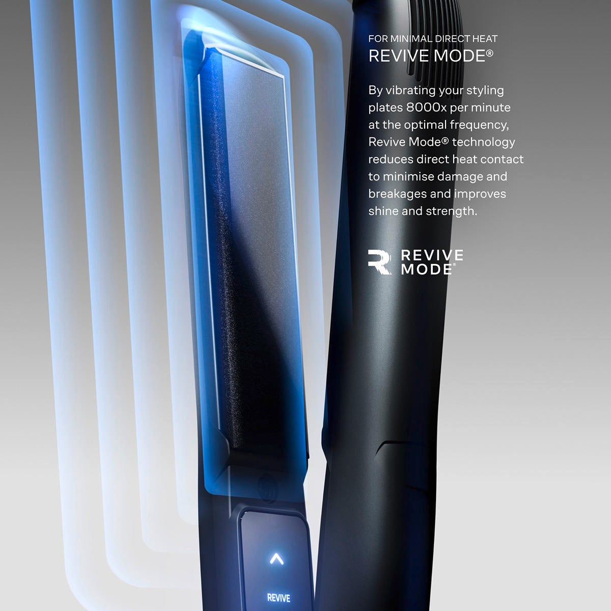- Pour un contact direct minimal avec la chaleur - Revive Mode®: en faisant vibrer les plaques de coiffage à 8000 oscillations par minute à une fréquence optimale, la technologie Revive Mode® réduit le contact direct avec la chaleur, minimise les dommages et la casse des cheveux et améliore leur brillance et leur résistance.