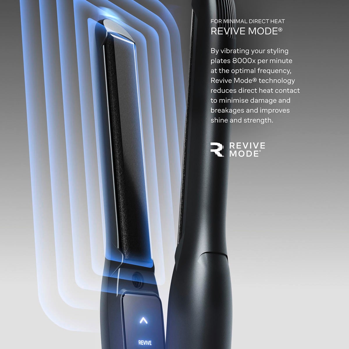 - Pour un contact direct minimal avec la chaleur - Revive Mode®: en faisant vibrer les plaques de coiffage à 8000 oscillations par minute à une fréquence optimale, la technologie Revive Mode® réduit le contact direct avec la chaleur, minimise les dommages et la casse des cheveux et améliore leur brillance et leur résistance.