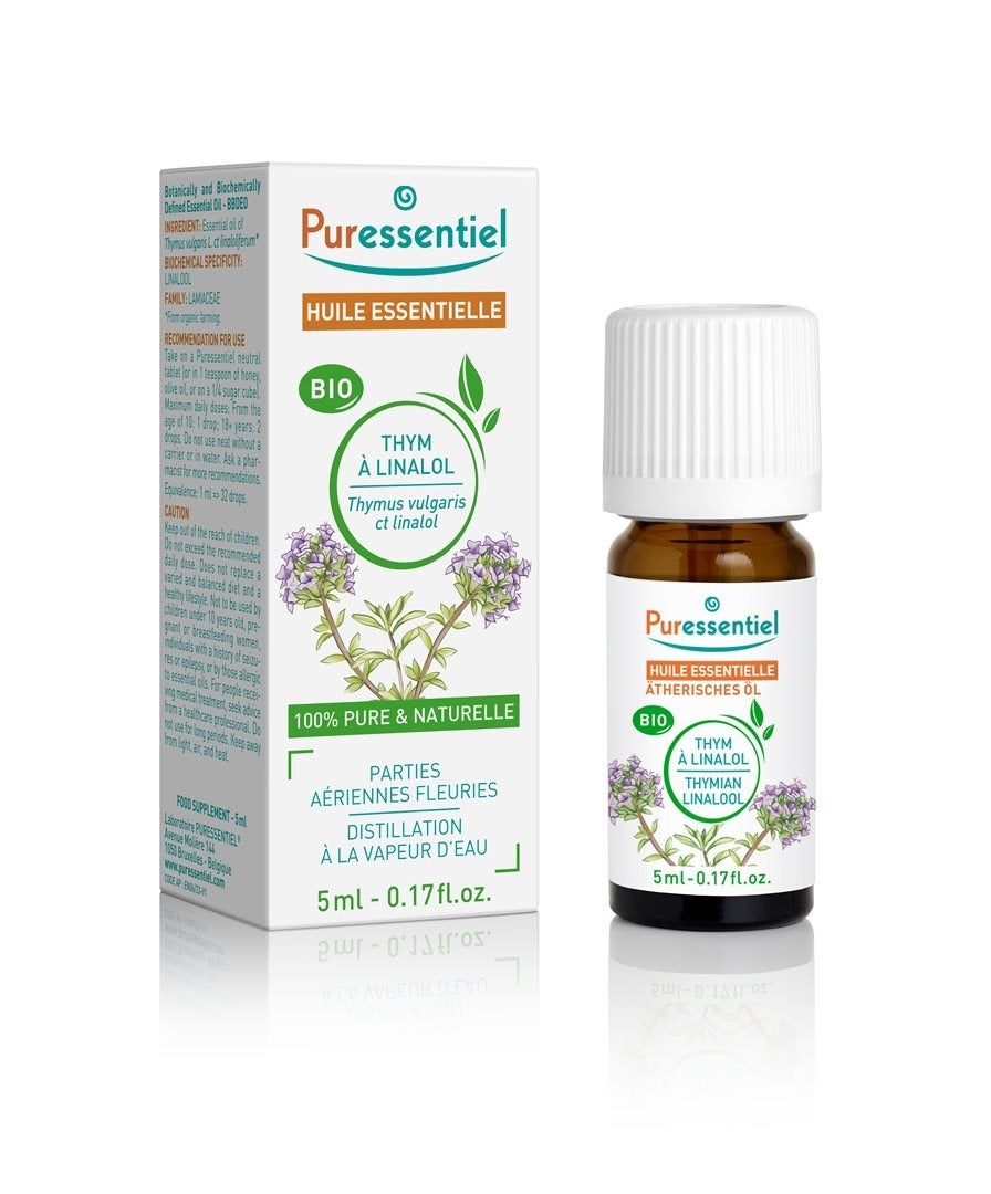 Huile essentielle de thymus vulgaris linaloliferum issue de l'agriculture biologique.