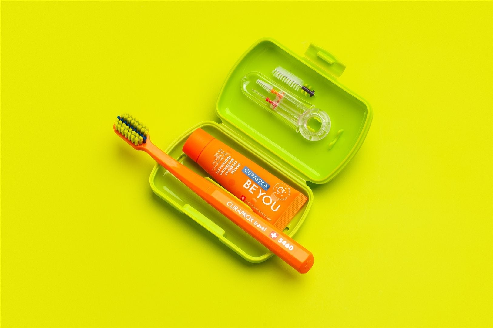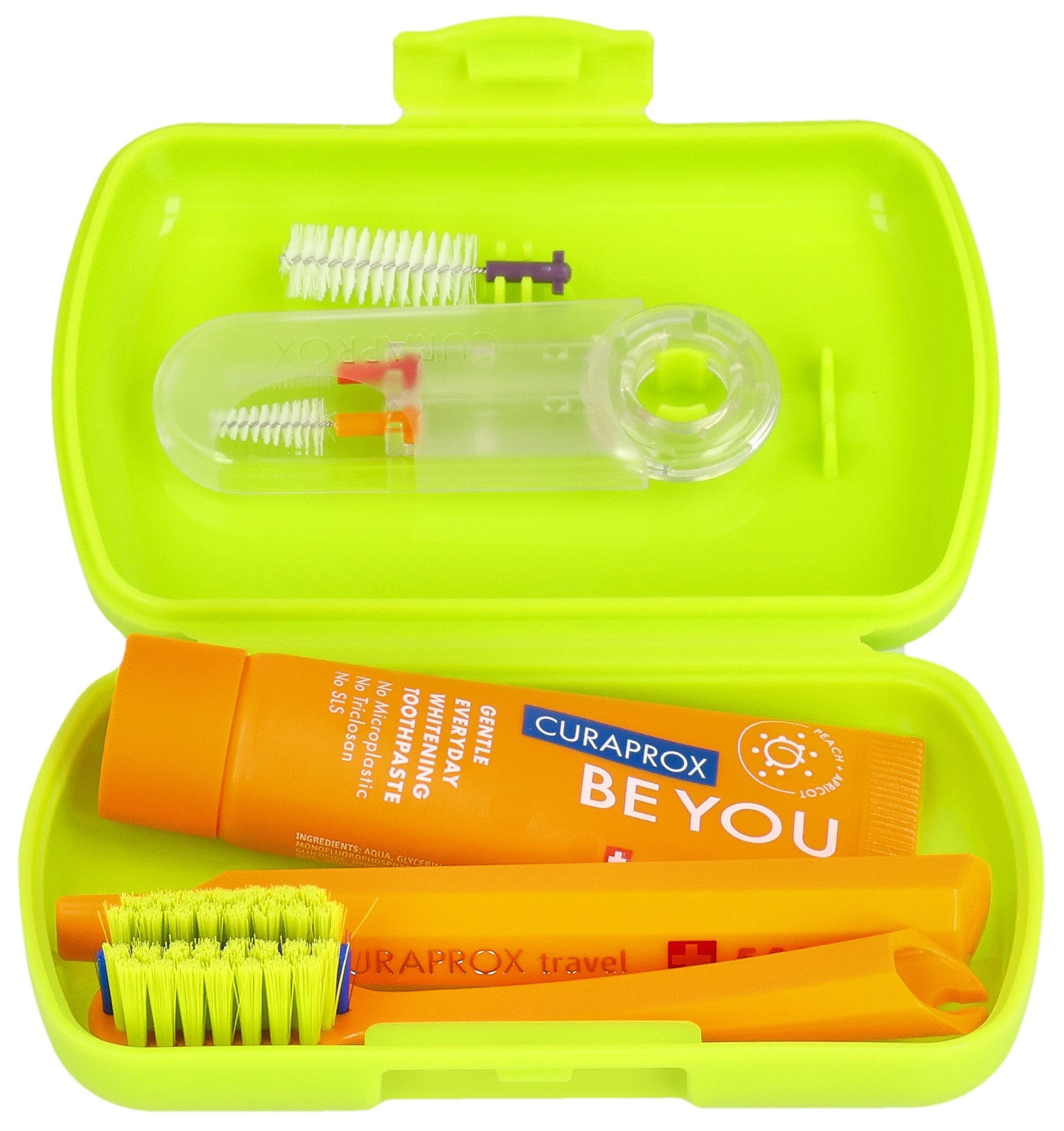 Le set de voyage Ortho contient une brosse à dents Ortho unique et raffinée, un dentifrice pétillant et frais pour le blanchiment ainsi que trois brosses interdentaires avec support duo. Une hygiène buccale parfaite possible pendant le traitement orthopédique - où que vous soyez. Pas de compromis. Pas de caries. Pas de taches.