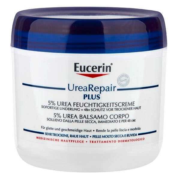 La crème pour le corps hydrate et lie intensivement. Apaise immédiatement la peau grâce à sa consistance crémeuse et protège contre les sensations de tension et la surface rugueuse de la peau pendant 48 heures. La crème hydratante Eucerin UreaRepair PLUS 5% se caractérise par une agréable texture crémeuse. Il contient le complexe Repair PLUS, unique et adapté à la peau : l'urée et d'autres facteurs naturels d'hydratation hydratent et lient intensivement, assurant ainsi le maintien de l'hydratation saine de la peau. Les céramides renforcent la barrière physiologique de la peau afin que l'humidité ne puisse pas s'échapper aussi rapidement. Les ingrédients spéciaux rétablissent l'équilibre naturel des lipides (graisses) et de l'hydratation de la peau. Application : Appliquez généreusement sur la peau nettoyée et séchée plusieurs fois par jour, selon les besoins. Massez doucement la lotion sur la peau jusqu'à ce qu'elle soit complètement absorbée. La peau est exposée à des facteurs tels que le climat, les nettoyages agressifs et le vieillissement naturel. Cela peut entraîner une perte d'hydratation et donc des symptômes de peau sèche : La peau est inconfortablement rugueuse, tendue, démange ou a tendance à s'écailler. Les produits de la série de soins UreaRepair sont enrichis en urée et autres facteurs naturels d'hydratation (NMF) - pour un apport intensif d'humidité. Eucerin UreaRepair PLUS apaise immédiatement les signes de la peau sèche grâce à son complexe unique Repair PLUS et offre une protection longue durée de 48 heures. Eucerin UreaRepair ORIGINAL vous offre un soin à l'urée riche et éprouvé. Tous les produits sont testés dermatologiquement et sont également idéaux pour le soin de la peau sèche chez les personnes âgées ainsi que pour accompagner le traitement de diverses maladies telles que la kératose pilaire ou le diabète.