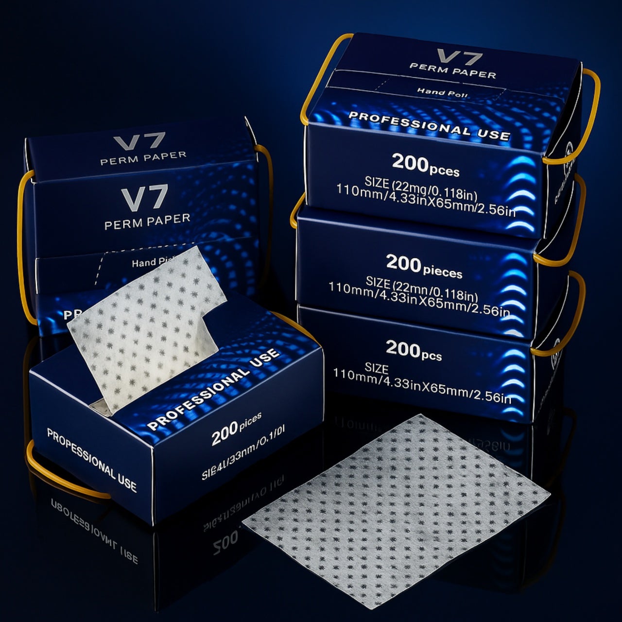 Papier de permanente V7 professionnel conçu pour protéger les pointes des cheveux et assurer une application uniforme du produit.