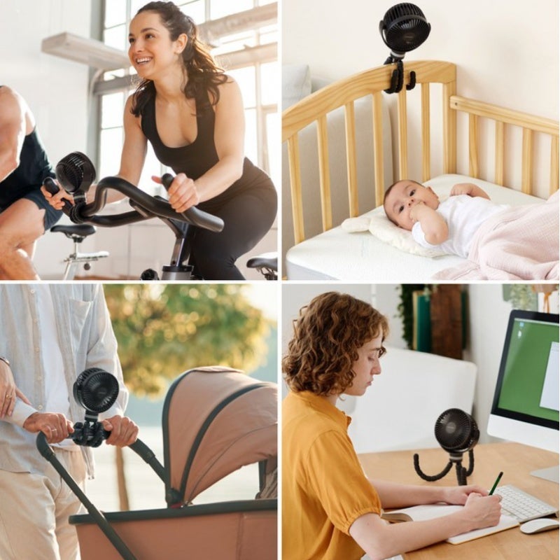 Grâce au trépied flexiblen, le ventilateur se fixe facilement aux poussettes, aux lits de bébé et aux sièges auto. Parfait pour la maison, les déplacements, le camping ou les voyages. Un compagnon pratique pour toutes les situations.