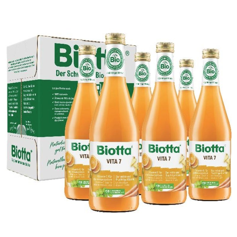 Orangensaft*, Karottensaft*, Bananenpüree* (13%), Apfelsaft*, Ananassaft*, Süßmolke* (10%), Traubensaft*, Sanddornsaft*, Rote Betesaft*, Zitronensaftkonzentrat*. Pasteurisiert. *aus biologischem Anbau