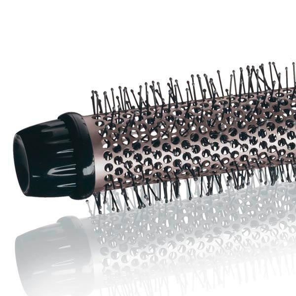 Brosse brushing avec technologie Titanium-Tourmaline. Sèche et coiffe en même temps les cheveux en douceur. Utilisation polyvalente pour lisser, boucler et donner du volume. Pointes isolées, poils avec pointes protectrices Époxy.