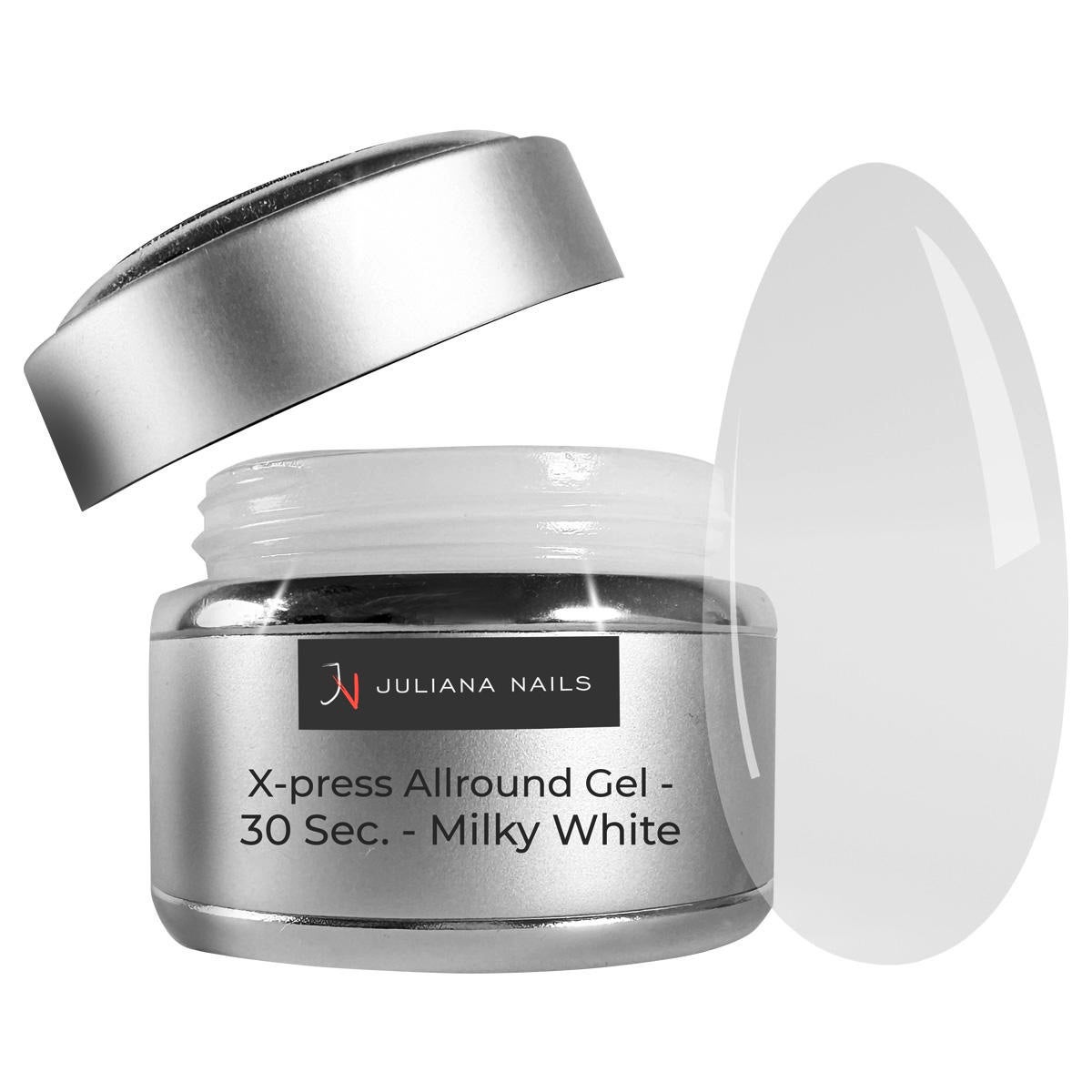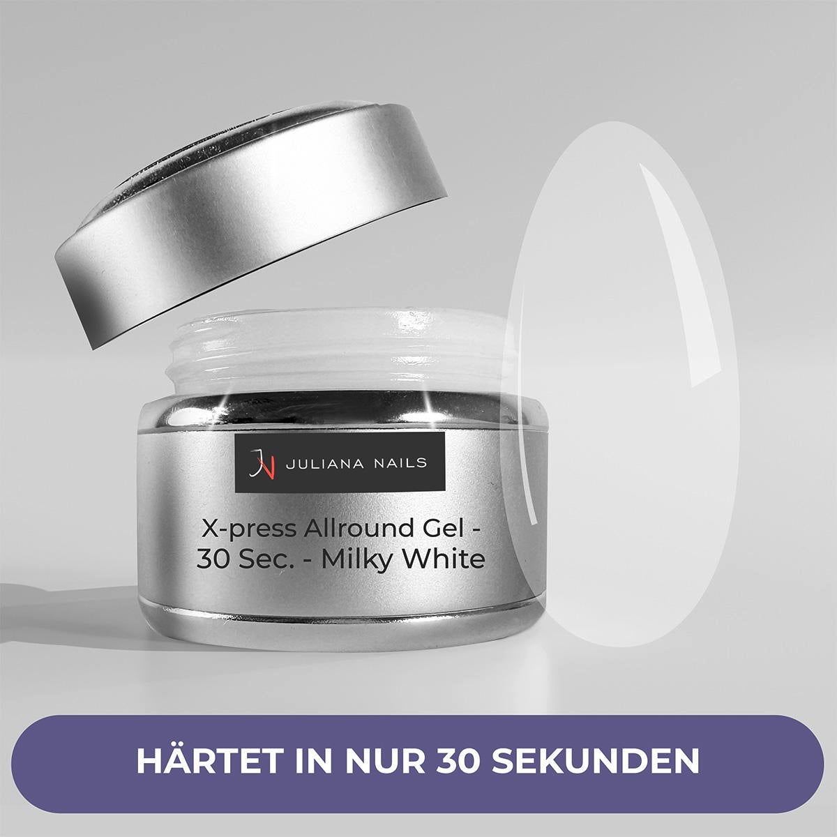Des ongles de rêve en 30 secondes seulement ! Notre X-press Allround Gel - 30 Sec - Milky White est un véritable game-changer dans ton répertoire de design d'ongles, car il durcit en seulement 30 secondes ! Cela signifie pour toi : Moins de temps à la table à ongles et plus de temps pour profiter de tes magnifiques ongles. Ce gel ne se contente pas de durcir à la vitesse de l'éclair, il réunit également en un seul produit un gel d'adhérence, un gel de construction et un gel de scellement. Sa consistance moyenne à épaisse assure une application facile sans couler trop rapidement dans les bords de l'ongle et son effet auto-lissant intense permet de réduire le travail de limage.