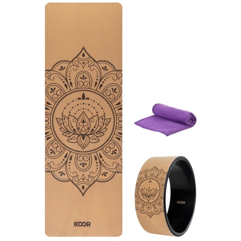 Avec le KOOR Yoga-Set 3, vous obtenez un ensemble complet et bien pensé pour une pratique du yoga variée et exigeante. Le set se compose de trois éléments soigneusement sélectionnés : un tapis de yoga en liège naturel, une serviette de yoga absorbante avec des picots antidérapants et une roue de yoga stable. Le tapis de yoga rzse distingue par le choix de matériaux respectueux de lenvironnement, par son toucher agréable et par sa surface antidérapante qui assure un maintien sûr lors de chaque exercice. Avec ses dimensions de 183x61cm, il offre suffisamment de place pour différents styles de yoga ou pour lentraînement fonctionnel.